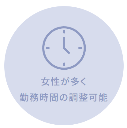女性が多い会社です。子育て、介護しながらでも、時間を調整して勤務可能です。研修・学会参加、認定取得を後押しします。